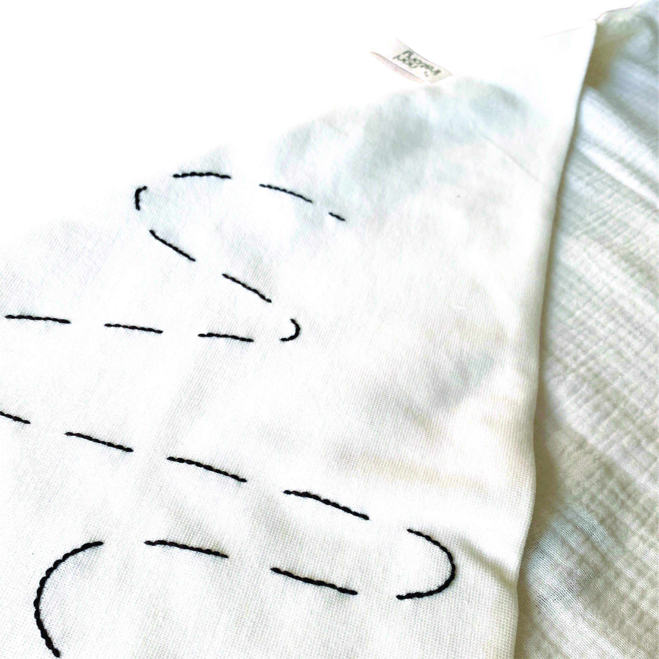 Close-up embroidery stitching on muslin baby hooded towel